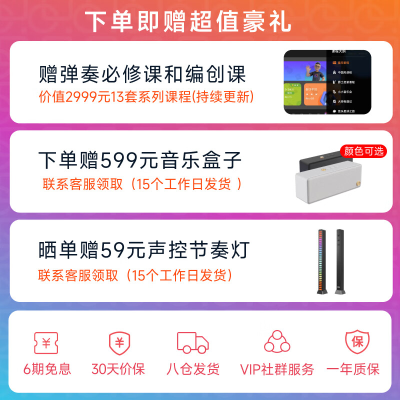 3、在中关村论坛嘉年华活动上看到了这个琴,当时尝试感觉不错,还可以简单学习,就趁着618活动在京东下单了。使用方便,不占空间,炫彩灯**氛拉满。京东自营送货快。