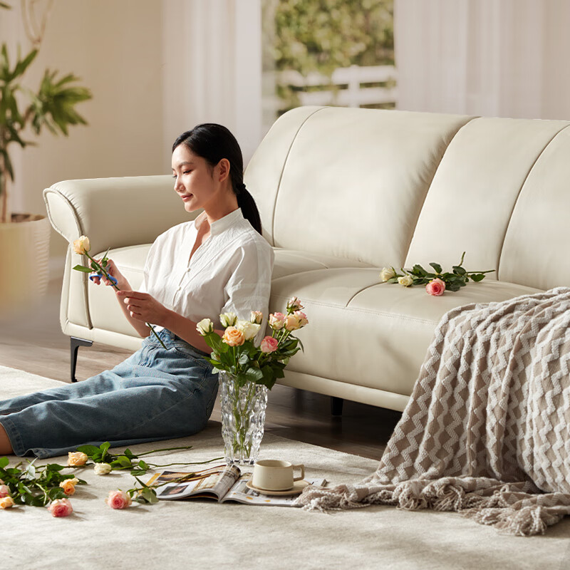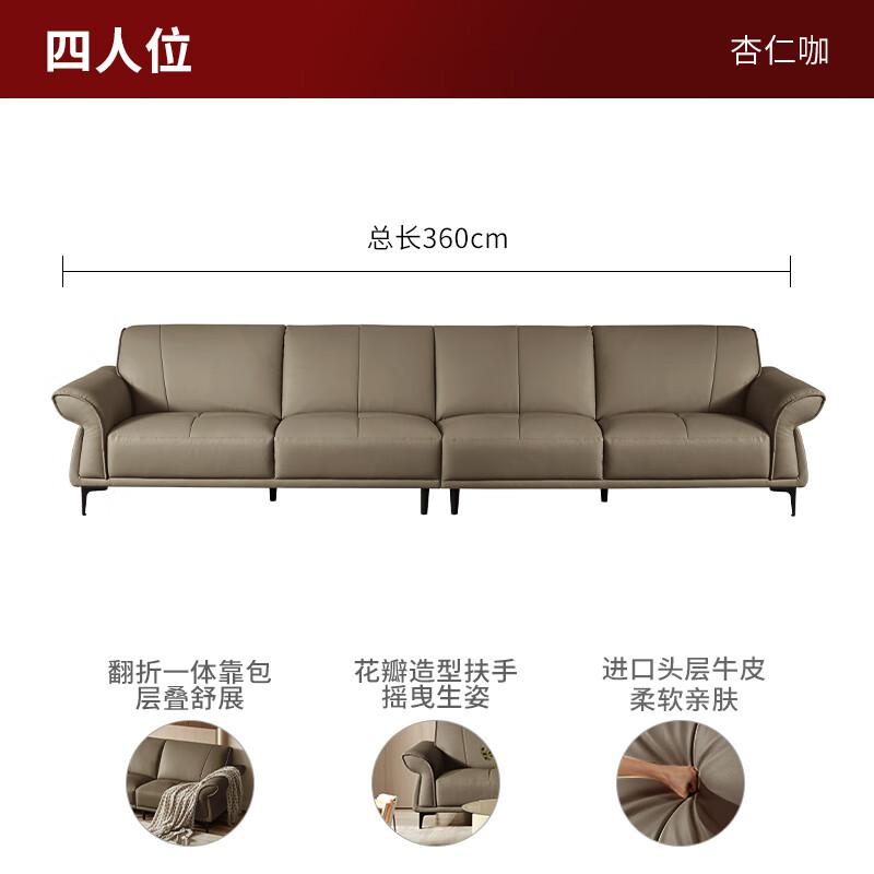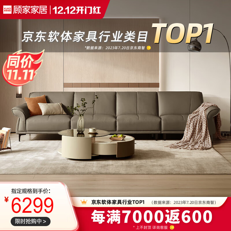 顾家家居(KUKA)现代简约头层牛皮沙发客厅沙发小户型1197【杏仁咖】四人位价格:6299.00元!