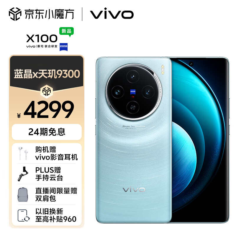 vivo X100 16GB+256GB 星迹蓝 蓝晶×天玑9300 5000mAh蓝海电池 蔡司超级长焦 120W双芯闪充 5G 拍照 手机价格:4299.00元!