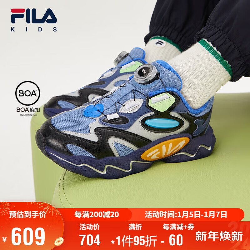 FILA斐乐童鞋儿童运动鞋2023冬中大童男女童BOA旋钮复古跑鞋价格:704.00元!