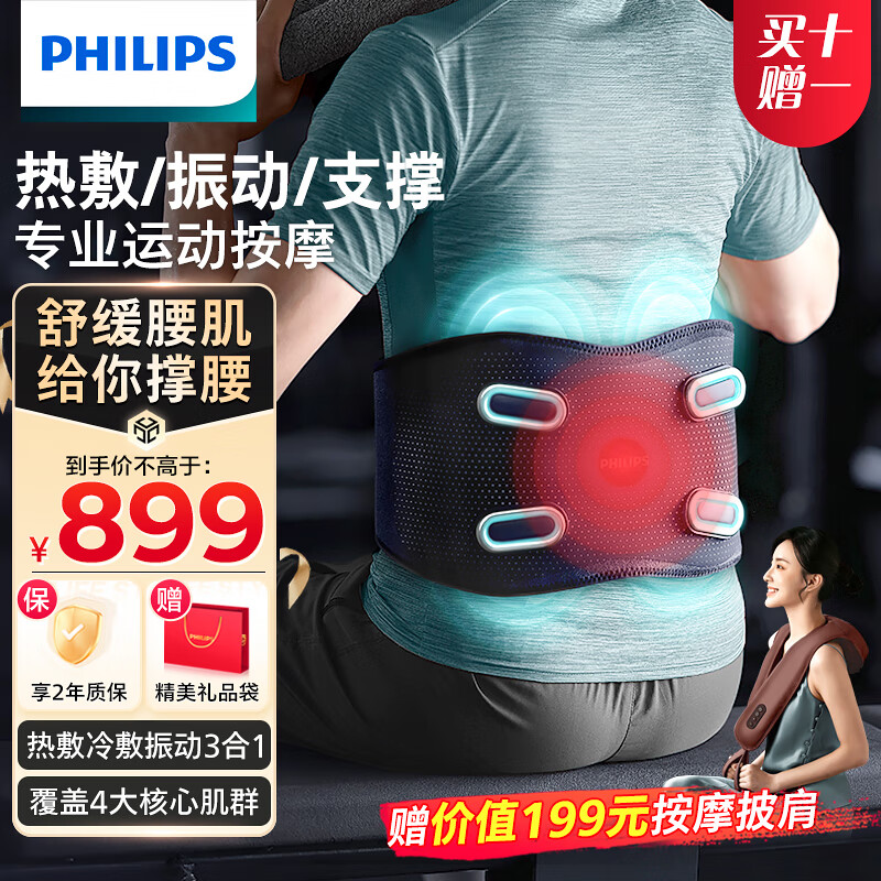 飞利浦(PHILIPS)腰部按摩器 冷敷热敷腰部按摩仪振动按摩缓解酸累物理支撑护腰带 年会礼品生日礼物 7201B价格:1049.00元!