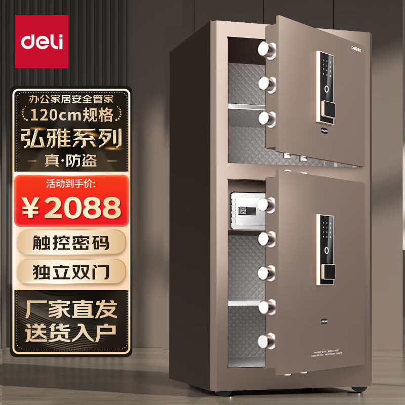 得力保险柜 高120CM双门办公家用保管箱 电子密码锁 科技布内饰 弘雅AE71-M 金色价格:2088.00元!