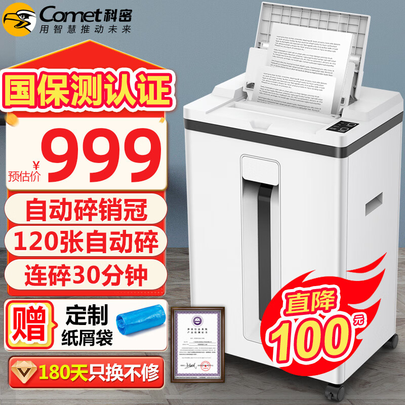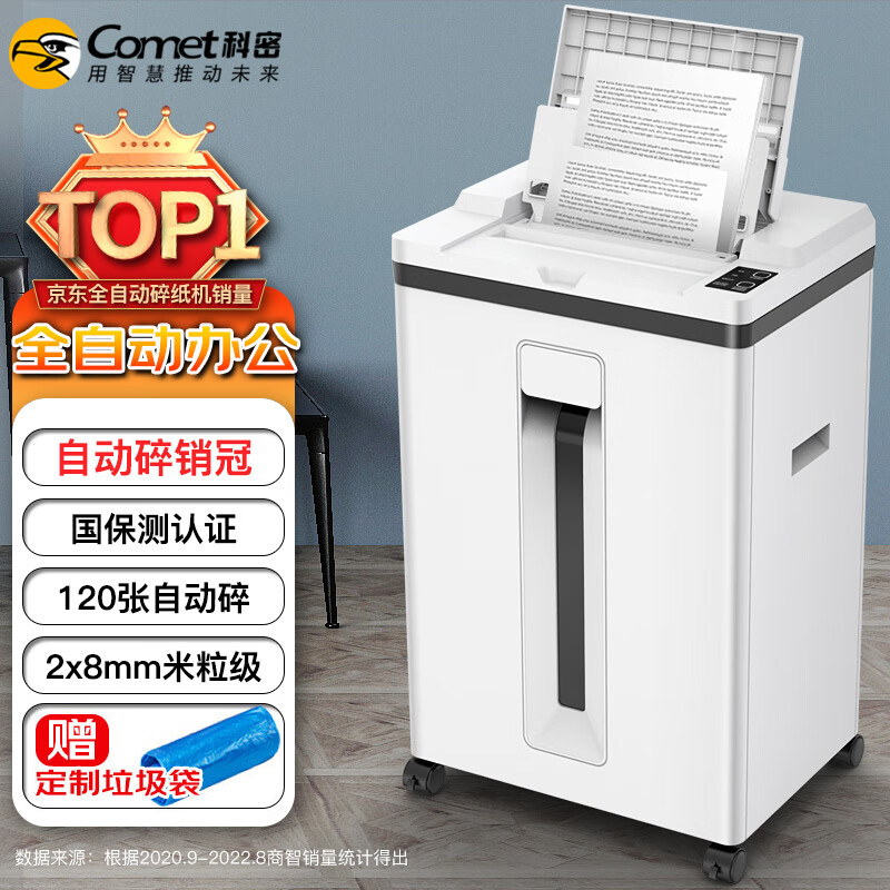 科密(comet)全自动碎纸机 二级保密认证 办公商用大型粉碎机(全自动120张 持续30分钟25L 3m/min)Z-600价格:1099.00元!