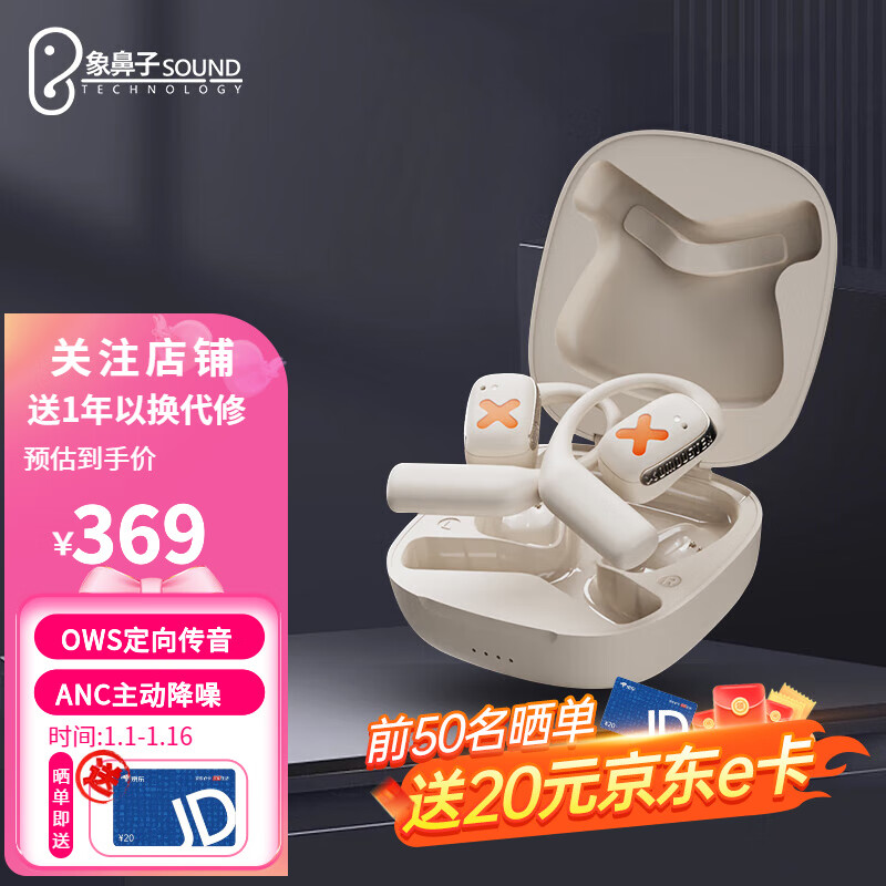 象鼻子OWS气传导蓝牙无线耳机挂耳式联名大怪兽开放式骨传导耳机不入耳舒适运动圈跑步长续航通话降噪D39 pro白价格:399.00元!