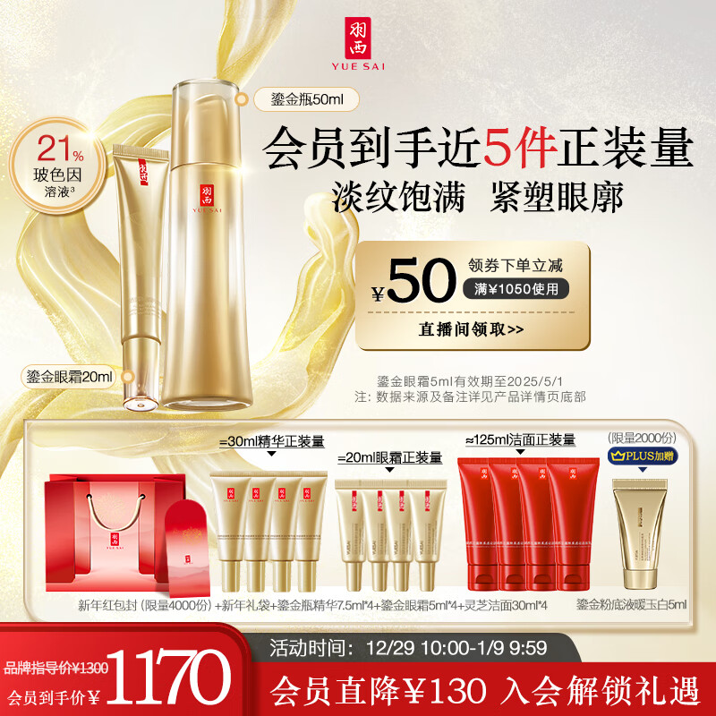 羽西鎏金套装(精华50ml+眼霜20ml)玻色因保湿淡化黑眼圈新年礼物女价格:1300.00元!