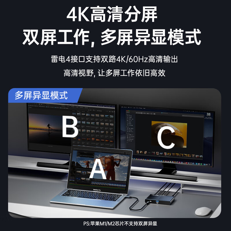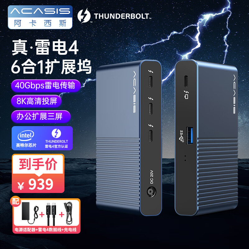阿卡西斯雷电4扩展坞桌面拓展坞USB4.0超清8k拓展三屏异显Intel认证6合1兼容雷雳苹果华为电脑笔记本DS-9001价格:999.00元!