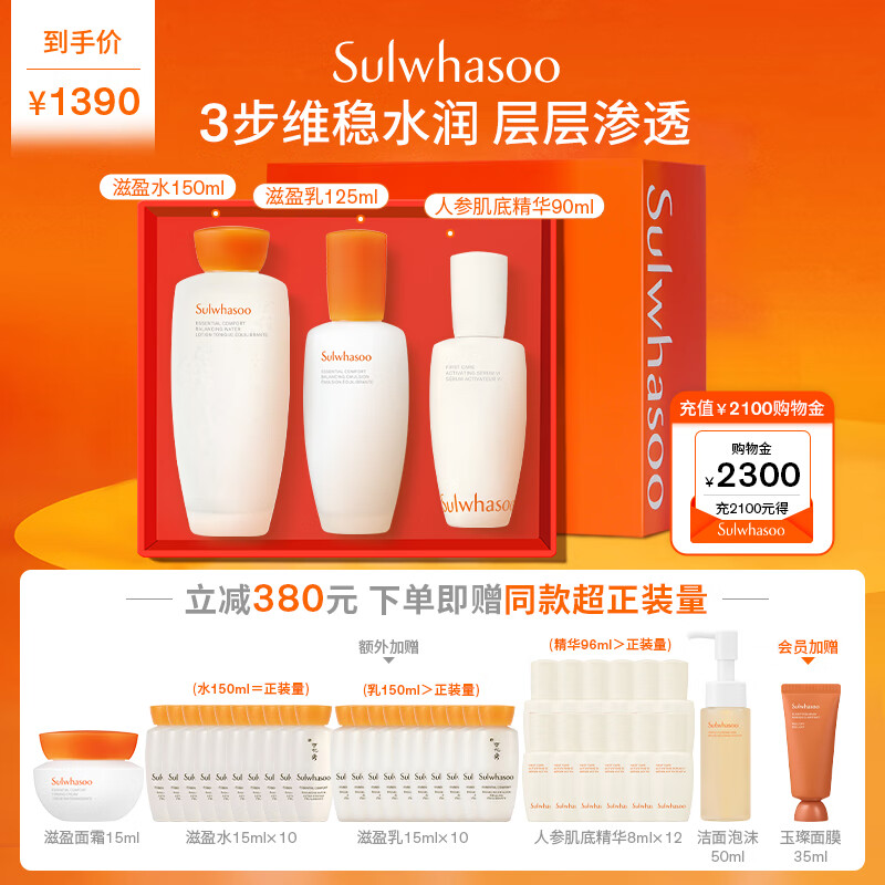 雪花秀滋盈水乳护肤套装爽肤水150ml+乳液125ml+精华90ml新年礼物送女友价格:1770.00元!