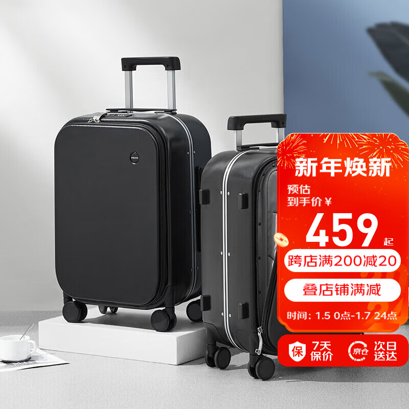 米熙铝框拉杆箱子行李箱前开盖旅行箱包密码箱登机箱男20英寸黑色60价格:659.00元!