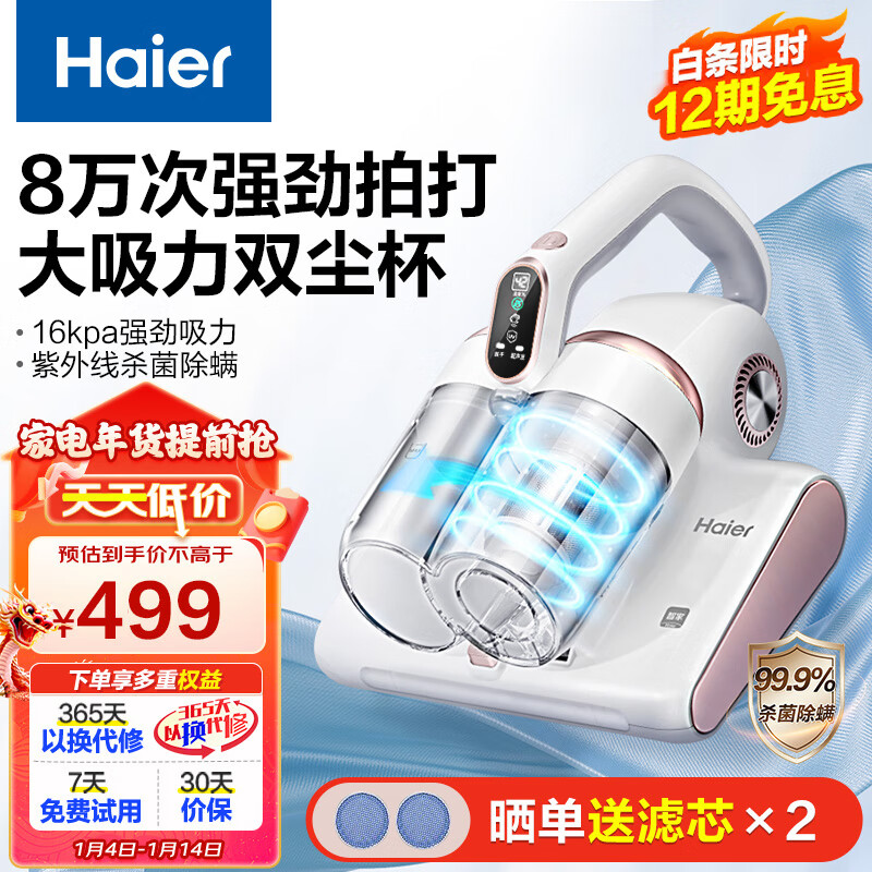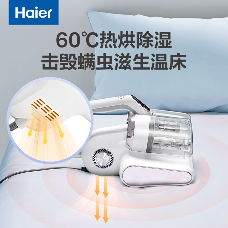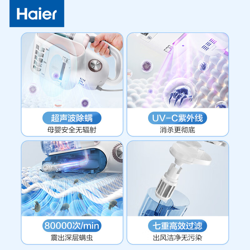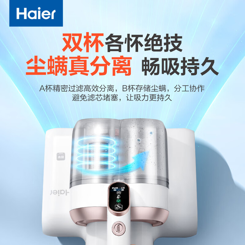 海尔除螨仪双杯尘螨分离家用床上超声波除螨虫紫外线杀菌大吸力吸尘神器8万次拍打C9W价格:469.00元!