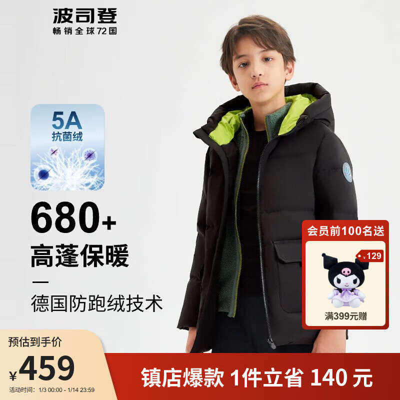 波司登2023秋冬男女童羽绒服中长款连帽保暖防风百搭休闲儿童外套T20145940E价格:599.00元!