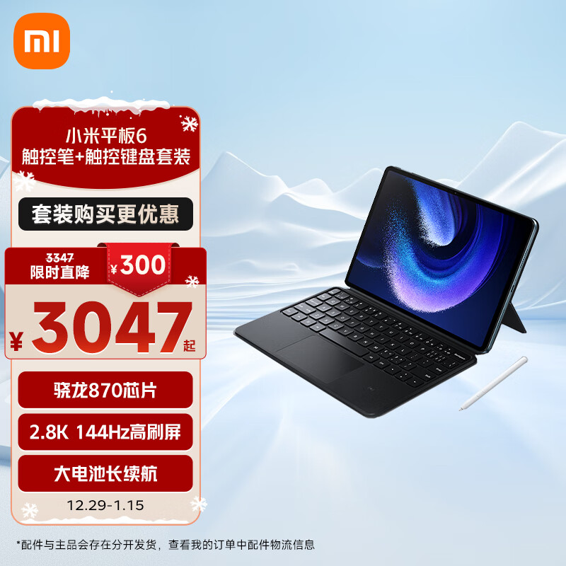 小米平板6 11英寸 骁龙870 144Hz 2.8K 8+256GB会议笔记移动办公娱乐平板电脑 远山蓝【触控笔+键盘套装】价格:3047.00元!