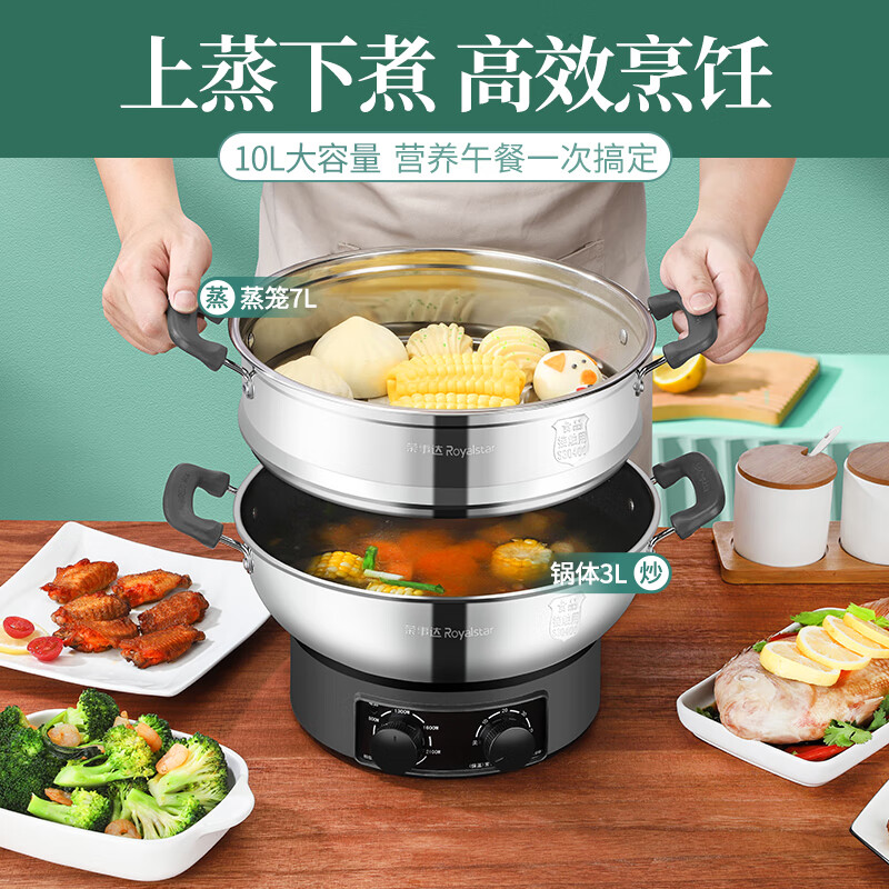 荣事达(Royalstar)电炒锅多功能家用铸铁锅电炒菜炒锅一体式不粘锅大功率蒸煮锅电热锅电火锅RDG-32CG单笼价格:289.00元!