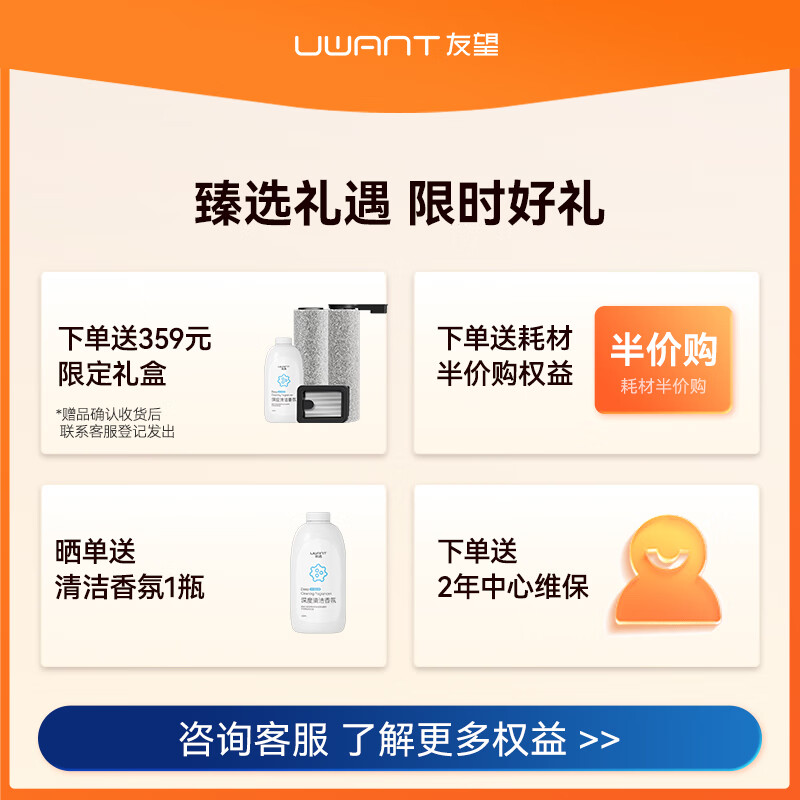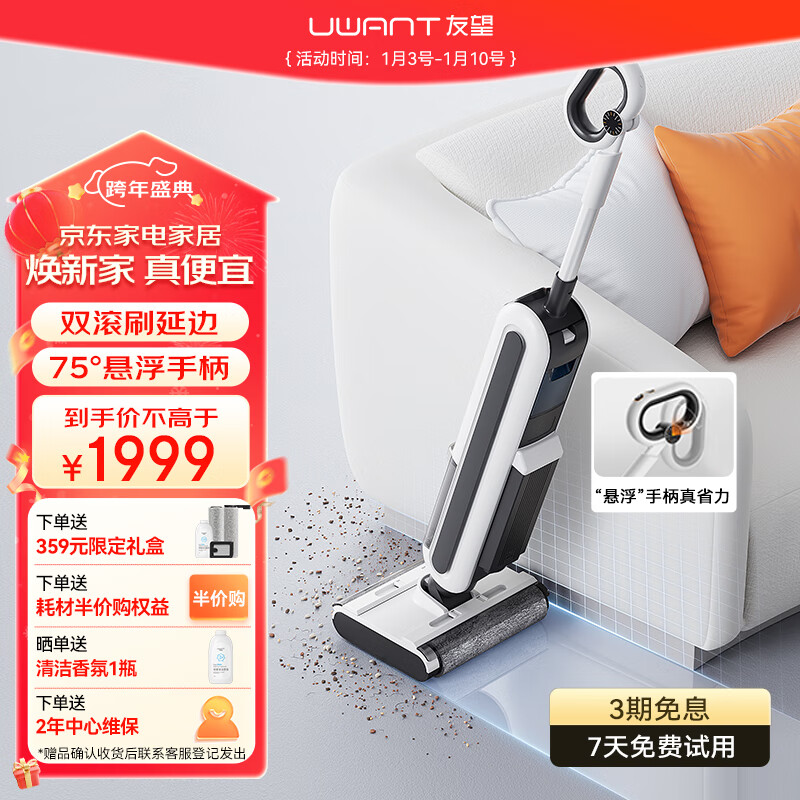 uwant友望小白洗地机家用 吸洗拖一体机拖地机擦地机吸尘 双滚刷洗地机热风烘干X100MAX价格:1999.00元!