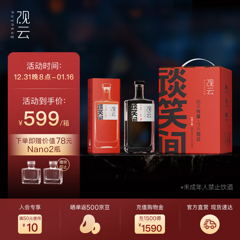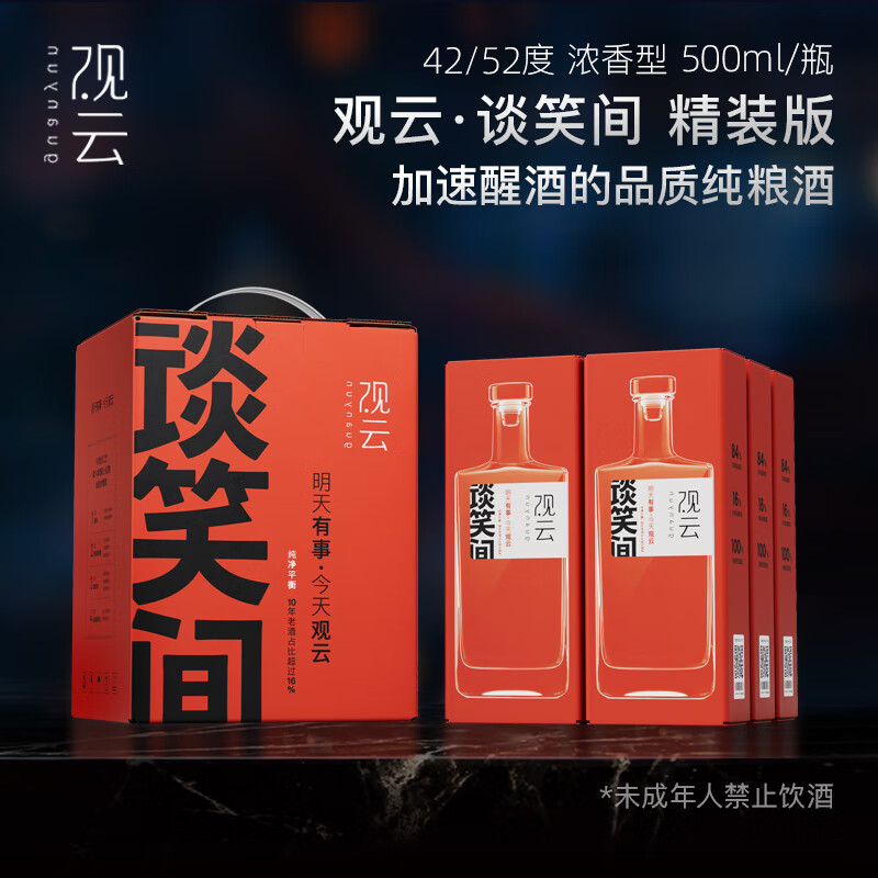 观云谈笑间精装版 浓香型白酒 52度 500ml*6瓶 箱装 过年送礼 含3礼袋价格:688.00元!