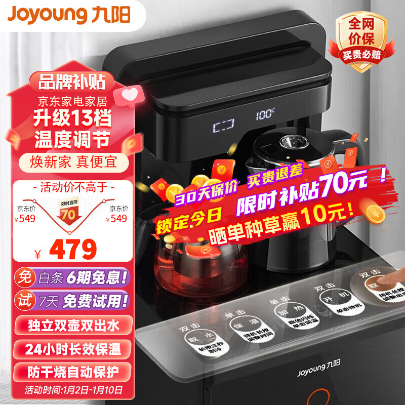 九阳(Joyoung)茶吧机 高端家用客厅多功能智能全自动上水立式饮水机 【24小时保温】拉丝雅黑 WH190 全新升级【智能大屏触控温热款】一键专温定制价格:549.00元!