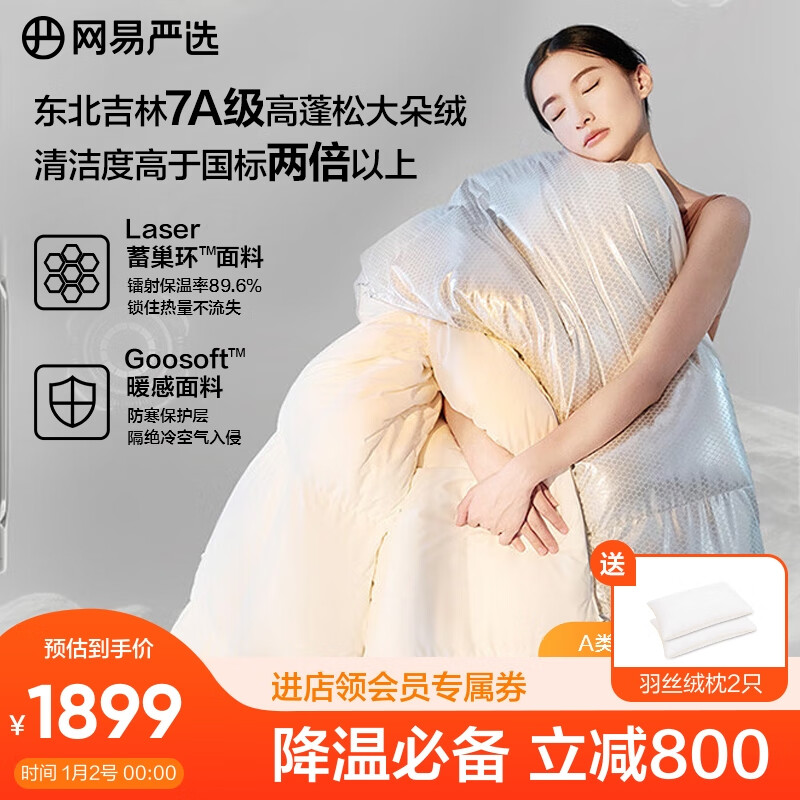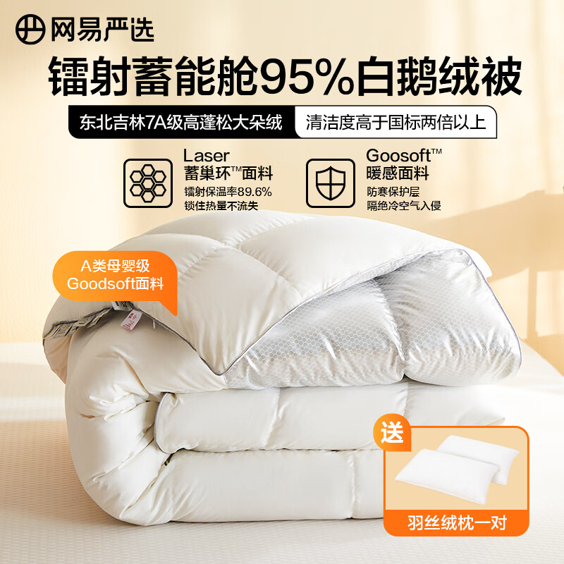 网易严选中国大鹅鹅绒被羽绒被A类95%白鹅绒被子1100g 220*240cm白色冬被价格:2699.00元!