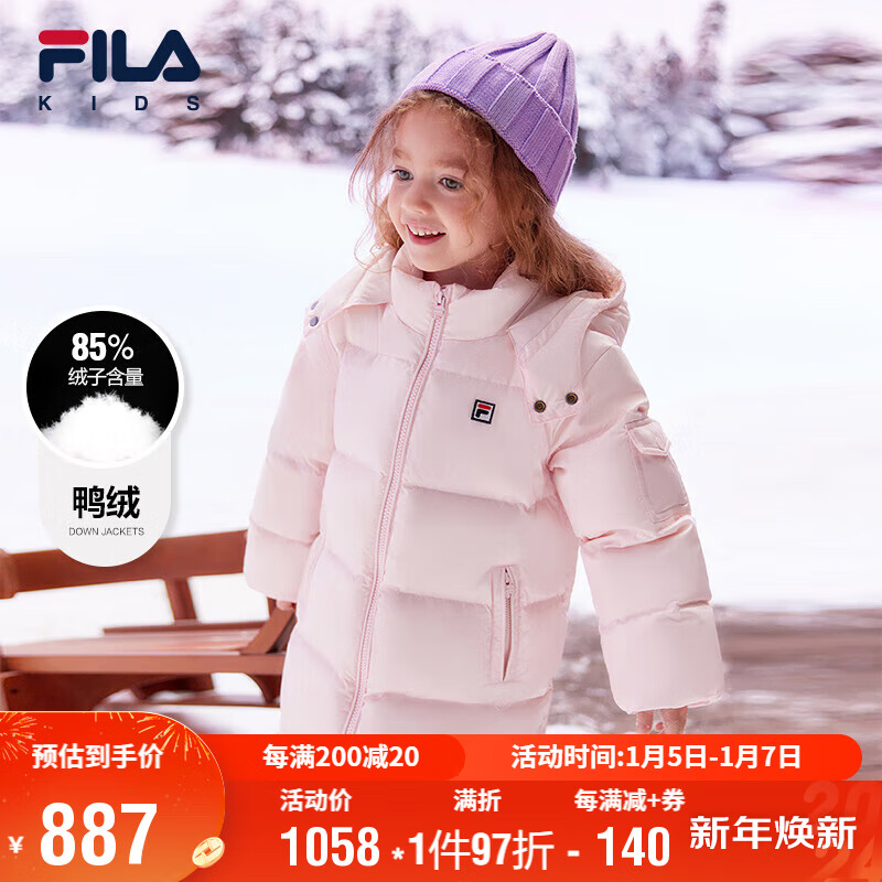 FILA斐乐童装外套2023秋冬中大童男童女童亮面中长款羽绒服价格:1058.00元!