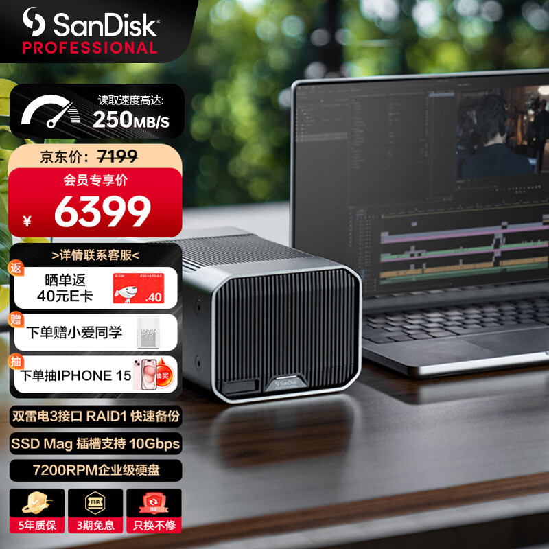 闪迪大师极锐 致镜12TB 双盘位企业级桌面移动硬盘 G-RAID? 磁盘列阵 双雷电3接口 内置7200转 高速桌面存储价格:6799.00元!