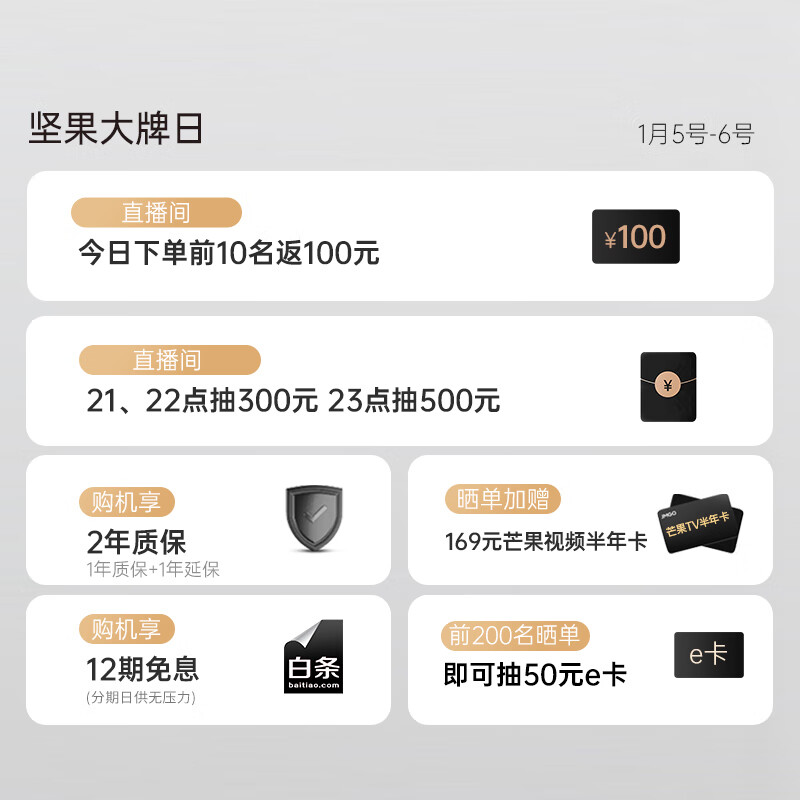 5、投影清晰,亮度高本来想买极米h6pro的结果以旧换新的速度超级慢,还好看了这款的参数,果断放弃极米,6月买的h64k版,亮度太低侧头有一角显示模糊,这款侧头没问题音质不错低音震撼客服米妮态度好