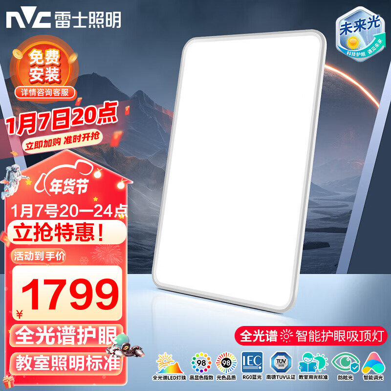 雷士(NVC)LED吸顶灯 现代简约客厅卧室灯具智控Ra98护眼全光谱灯饰未来光F价格:2099.00元!