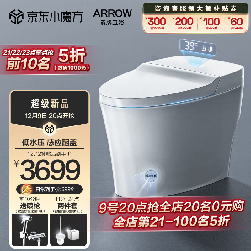 箭牌(ARROW)智能马桶恒温座圈按摩加热坐便器 低水压脚感翻盖翻圈AKE1135M价格:6595.00元!