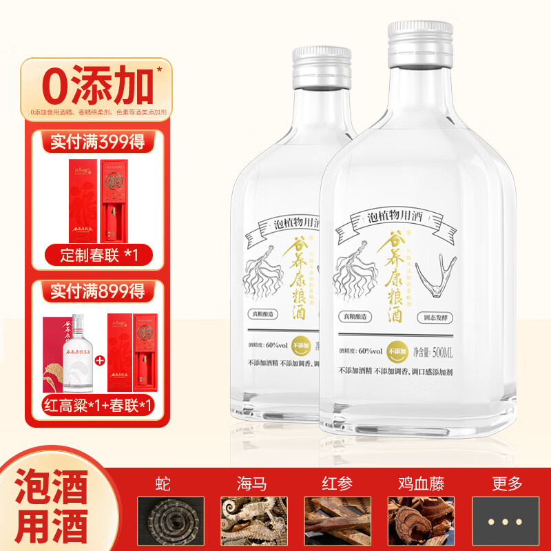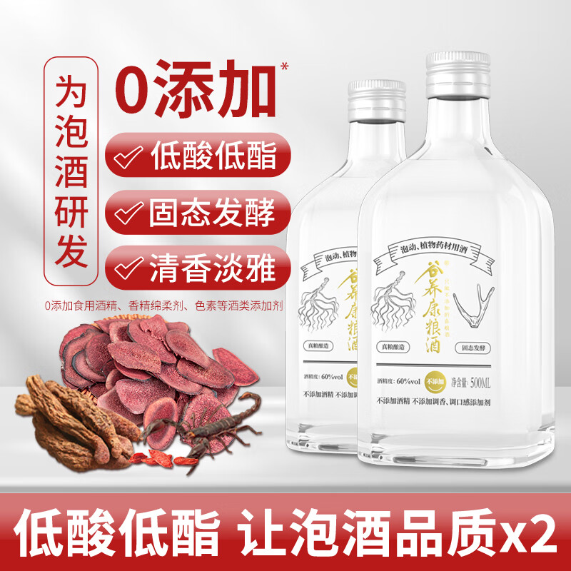 谷养康粮食酒 泡酒用酒瓶装清香高粱酒白酒泡果酒泡药酒纯粮酒 60度 500mL 2瓶 【质选】适合动植物价格:416.00元!