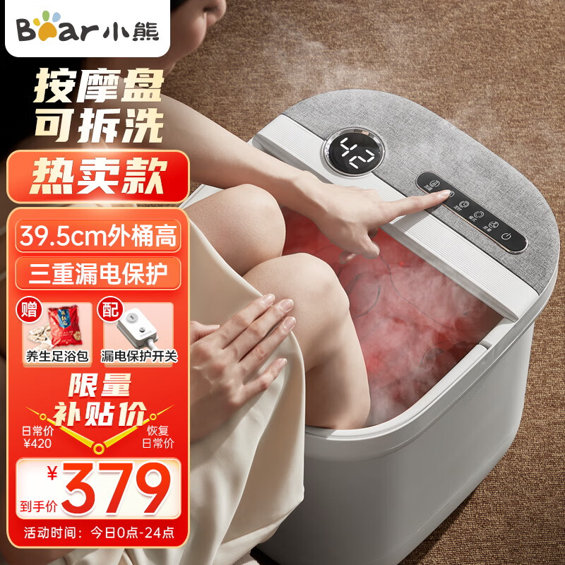 小熊(Bear)泡脚桶 足浴盆 泡脚盆洗脚盆加热全自动按摩 按摩盘可拆卸高深桶养生 生日礼物男女E08L1价格:420.00元!