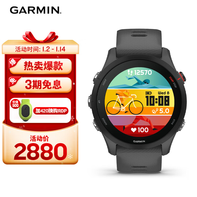佳明(GARMIN)Forerunner255神秘灰心率血氧HRV跑步铁三游泳户外运动手表价格:2880.00元!