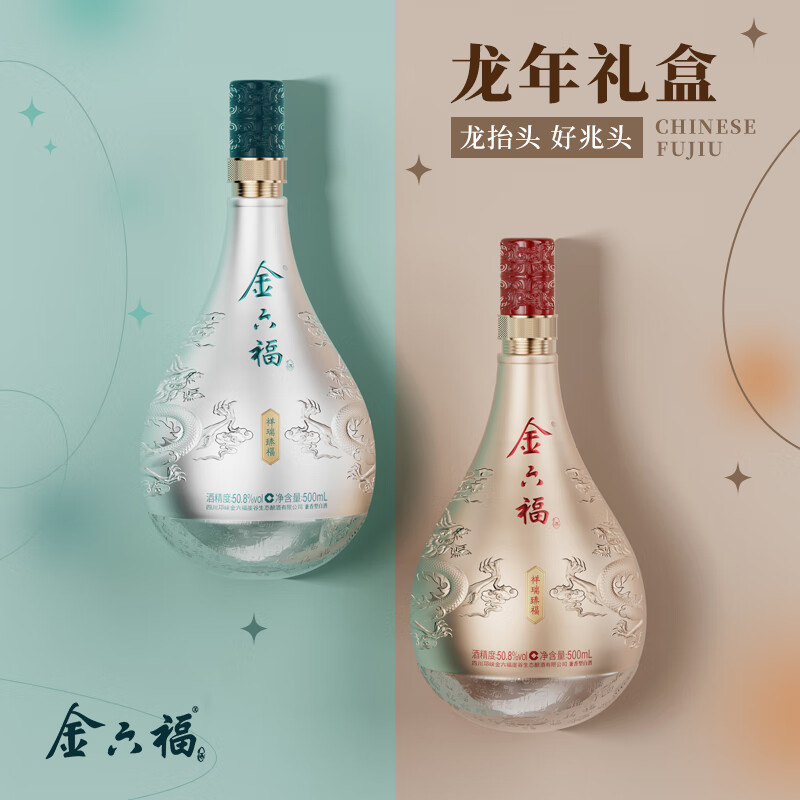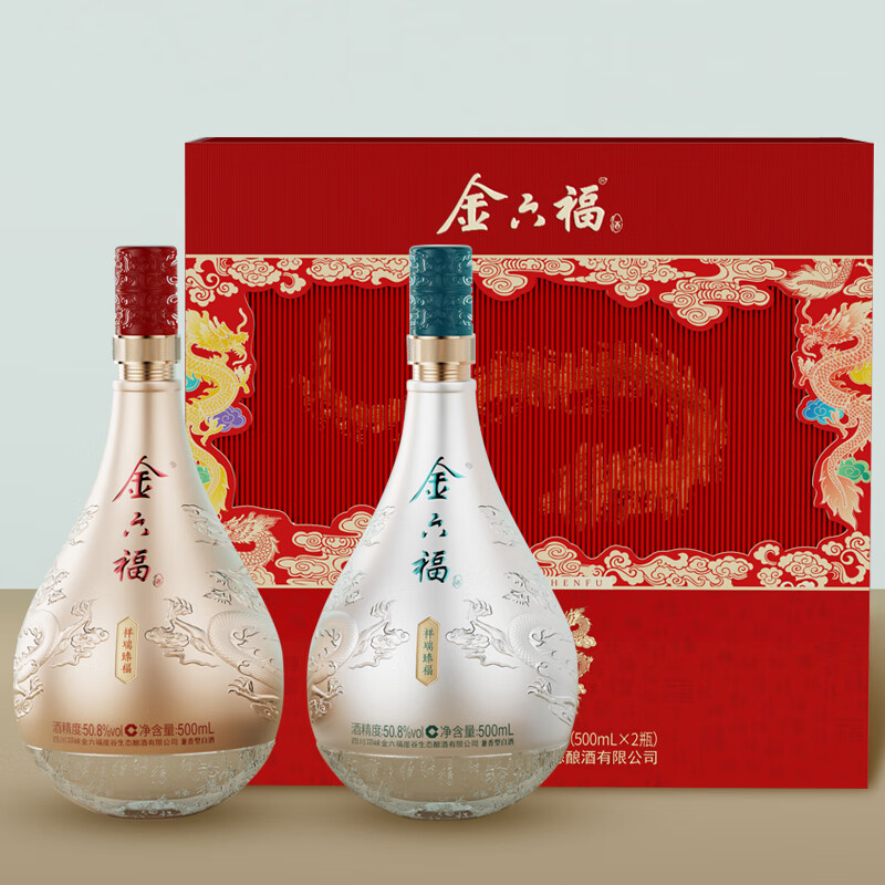 金六福 祥瑞臻福 50.8度 500ml*2瓶 礼盒装 兼香型白酒 龙年礼盒价格:288.00元!