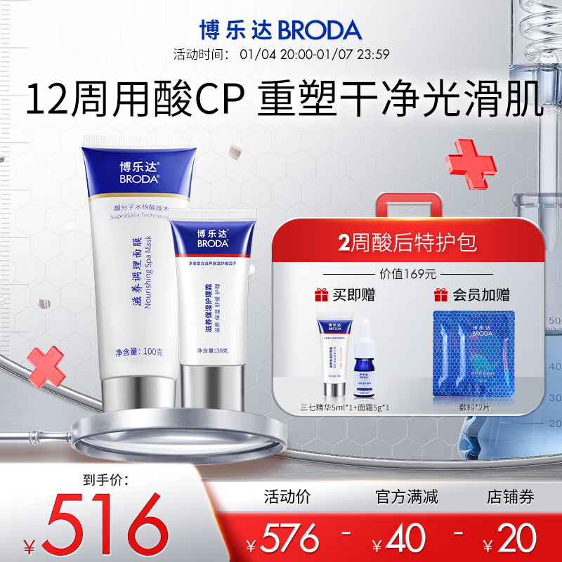 博乐达超分子水杨酸祛痘调理面膜闭口粉刺黑头男女100g面膜+30g保湿霜价格:576.00元!