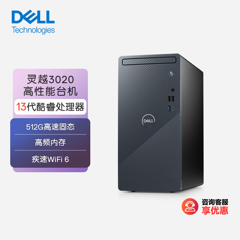 戴尔(Dell)灵越3020 新款 台式电脑主机 高性能整机 台式机 商用办公电脑 教育学习 图形设计 (13代i3-13100 8G 512GSSD三年上门)单主机价格:3099.00元!