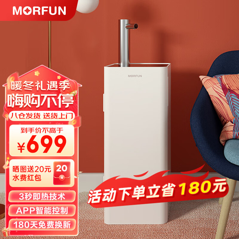 魔凡(MORFUN)即热式茶吧机饮水机家用高端客厅用智能全自动上水下置式桶装水办公室小型速热泡茶烧水一体机 MF809银色柱【米家APP版】 即热型价格:869.00元!