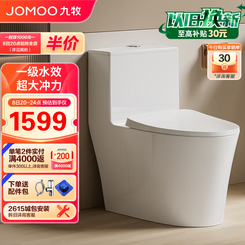 九牧(JOMOO)11350-2-2/41K-1家用大冲力喷射虹吸排污马桶坐便器400坑距价格:2049.00元!