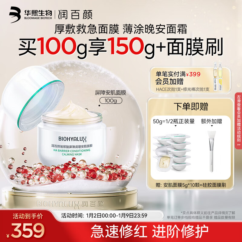 润百颜玻尿酸白纱布调理安肌面膜100g敏肌修护睡眠面膜护肤品补水礼物女价格:379.00元!