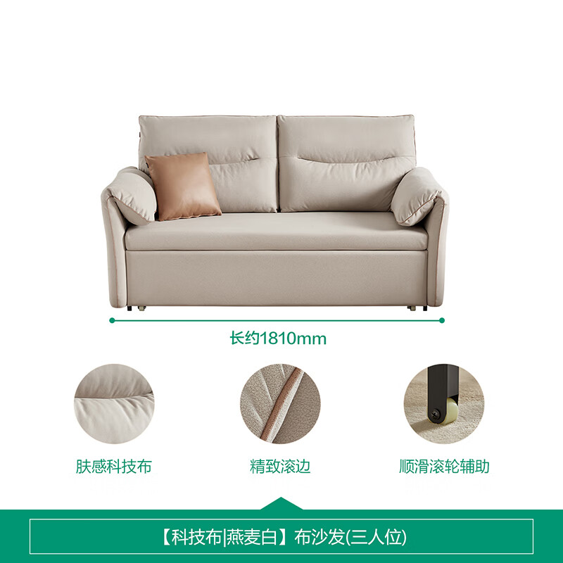 全友家居 沙发床奶油风多用科技布沙发大象耳朵小户型客厅家具111032价格:2388.90元!