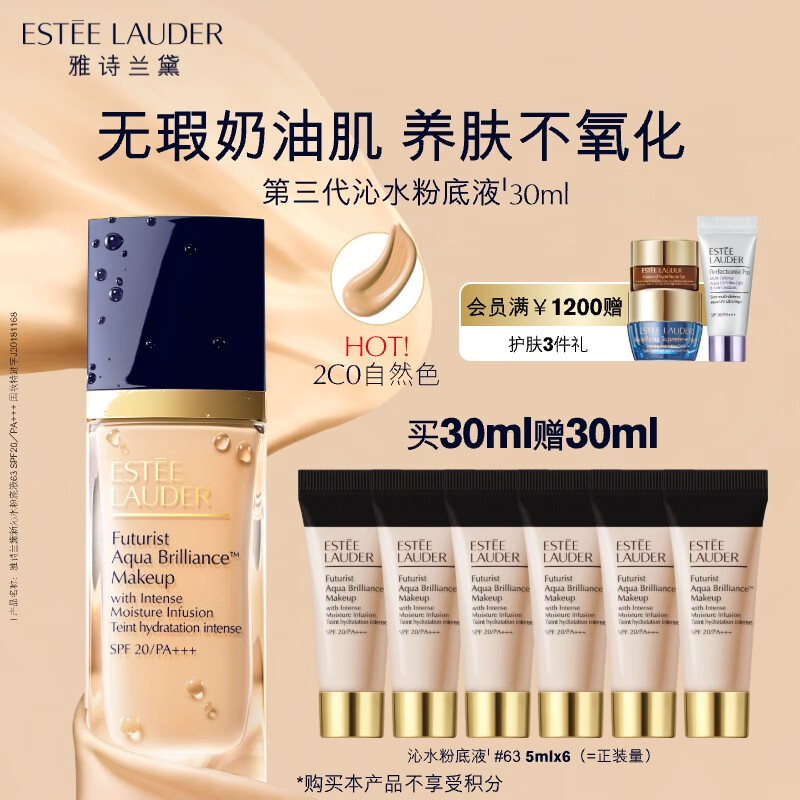 雅诗兰黛沁水粉底液63#自然肤色冷调(2C0)30ml干皮遮瑕化妆品生日礼物价格:550.00元!