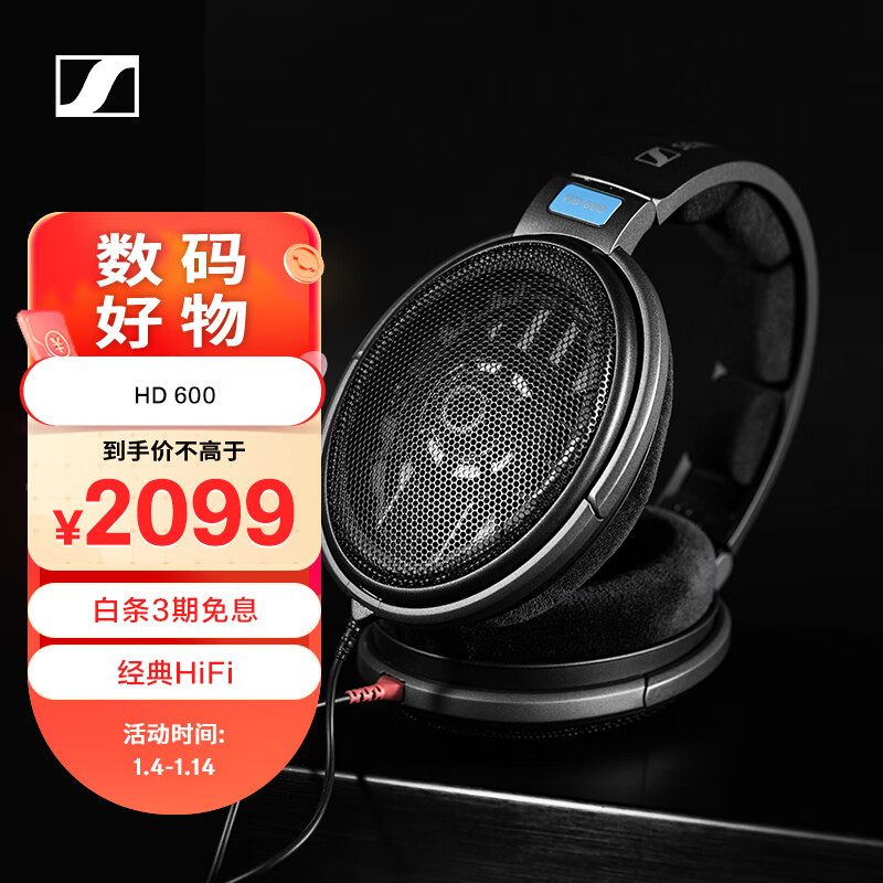 森海塞尔(Sennheiser)HD600 升级版HIFI高保真耳机 开放头戴式耳机 黑色价格:2099.00元!