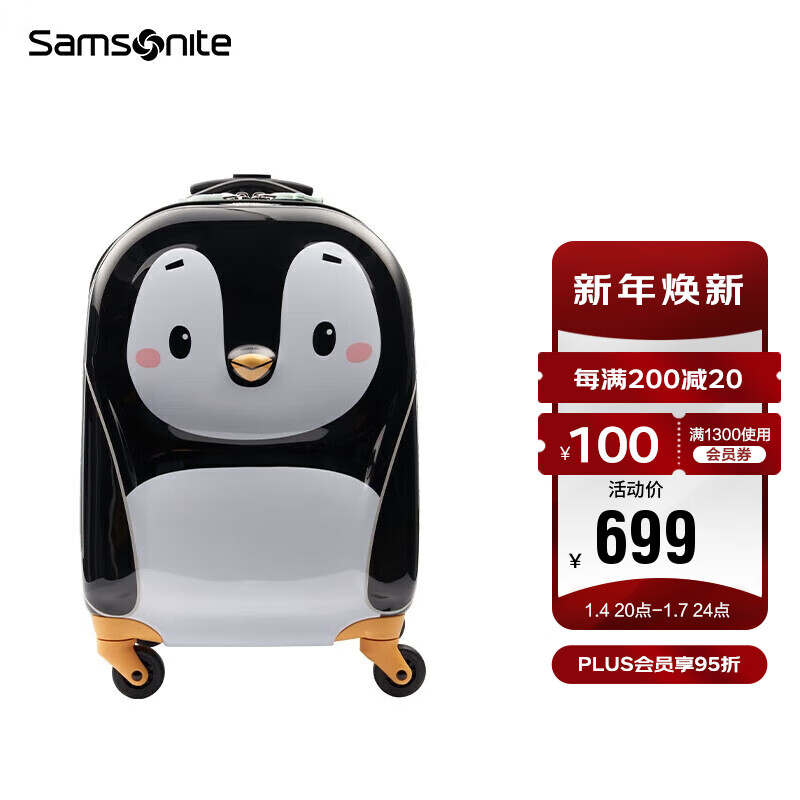 新秀丽(Samsonite)行李箱23年上新儿童旅行登机箱时尚萌趣U22*19121企鹅16英寸价格:699.00元!