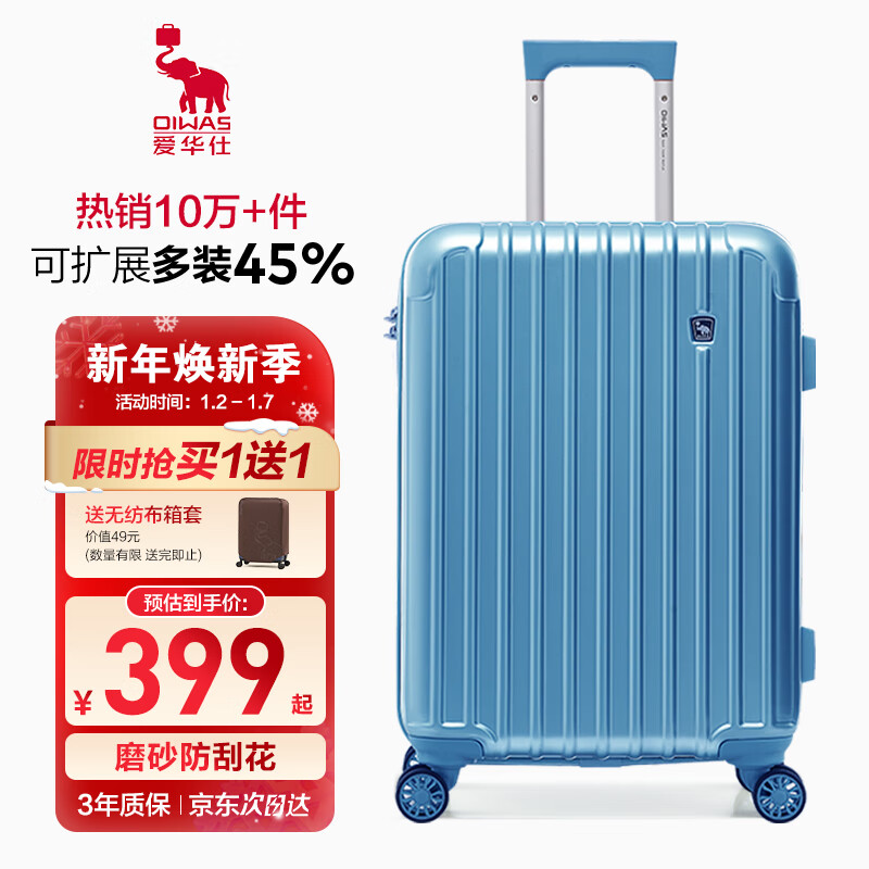 爱华仕行李箱女拉杆箱男旅行箱大容量密码箱24英寸可扩展学生箱雾霾蓝价格:798.00元!