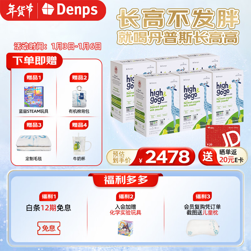 丹普斯丹麦Denps high&gogo有机儿童调制乳粉6盒装价格参考: