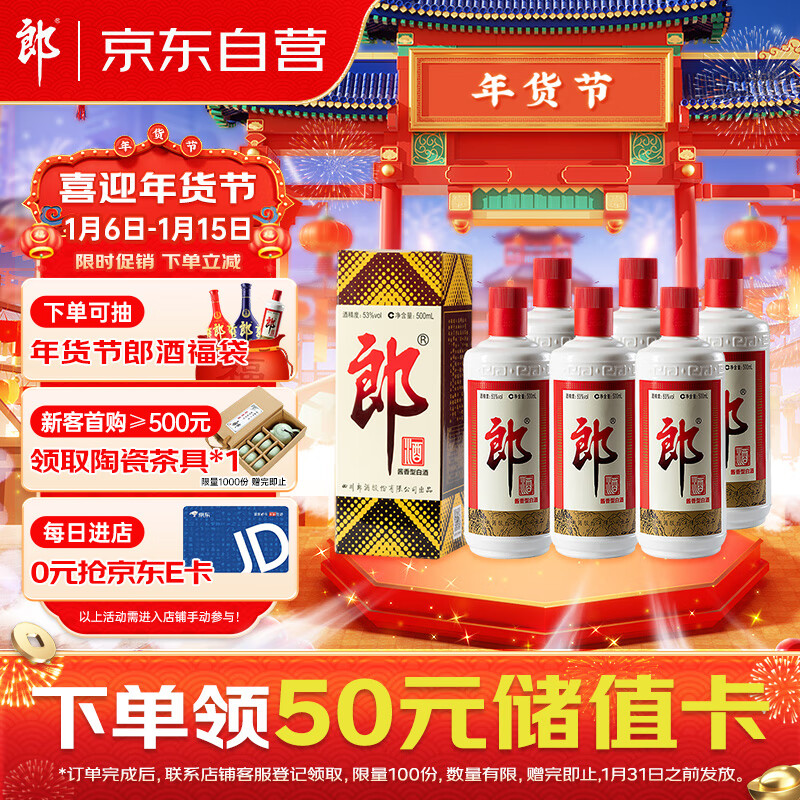 郎酒 郎牌郎酒 酱香型 53度 500ml*6瓶分装非原箱【礼品装】年货送礼价格:1580.00元!
