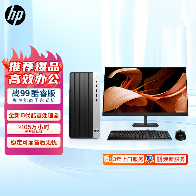 惠普(HP)战99 新款 台式电脑主机 专业商用高性能台式机整机 办公教育学习 图形设计 战系列大机箱(13代i3-13100 16G 512GSSD WiFi 蓝牙)27英寸大屏显示器价格:3699.00元!
