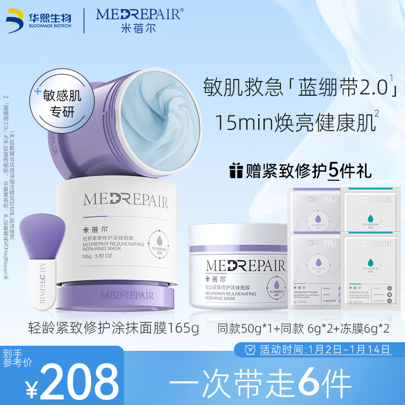 米蓓尔(MedRepair)轻龄紧致修护涂抹式蓝绷带面膜2.0补水保湿舒缓泥膜165g价格:208.00元!