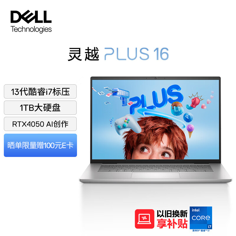 戴尔(DELL)笔记本电脑灵越PLUS16-7630 16英寸超能轻薄本游戏设计办公 13代酷睿i7标压 16G 1TB RTX4050 2.5K屏价格:8499.00元!