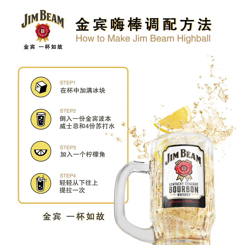 金宾(Jim Beam)白占边 美国 调和型 威士忌 洋酒 750ml*6支 整箱装 年货礼盒价格:483.00元!