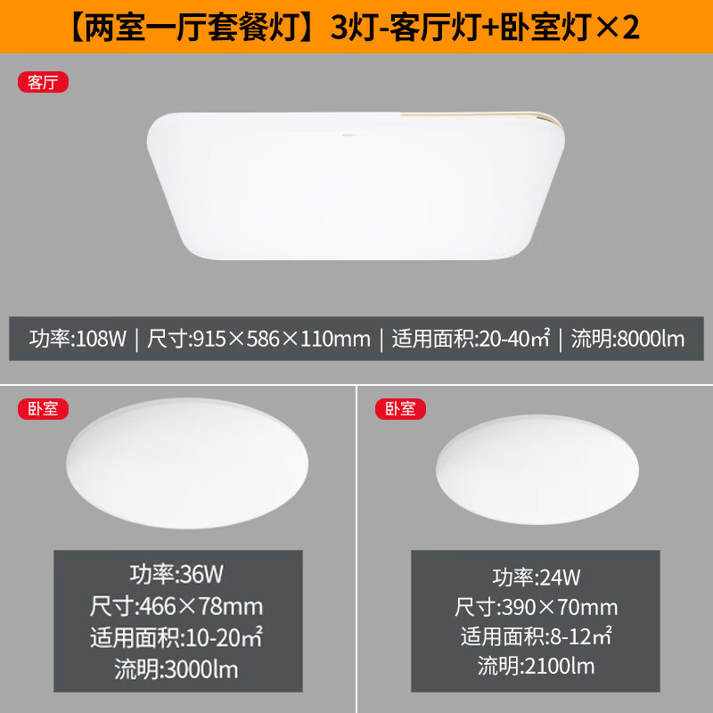 飞利浦(PHILIPS)led吸顶灯客厅灯现代简约餐厅灯三色可调灯具套餐两室一厅 品逸价格:1229.00元!