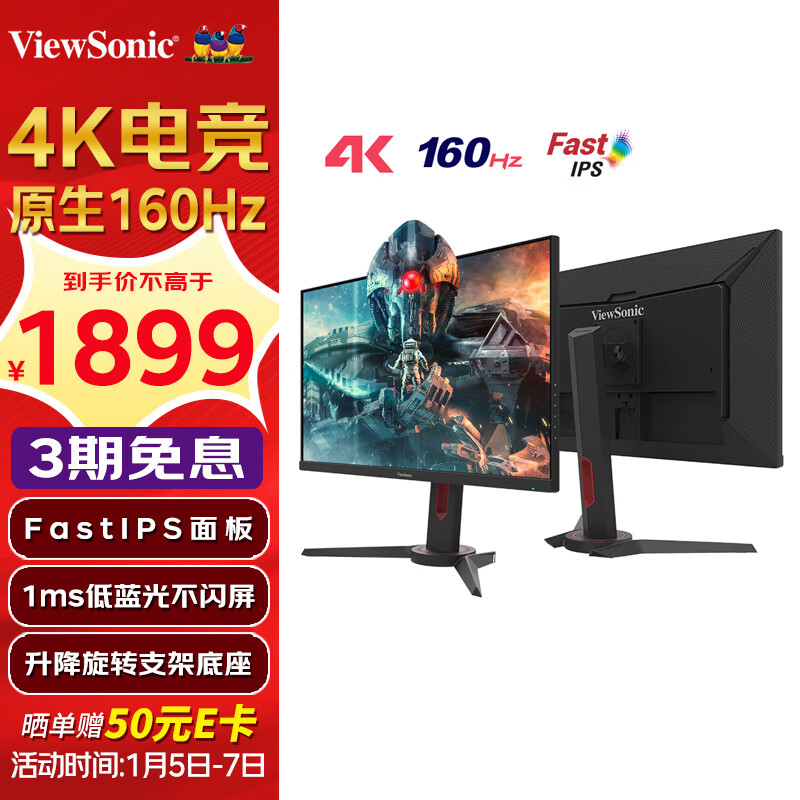 优派27英寸FastIPS 4K电竞游戏显示器 原生160hz 1ms低蓝光电脑屏幕 HDR外接显示屏 旋转升降VX2758-4K-PRO-3价格:2099.00元!