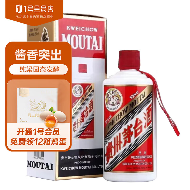 茅台(MOUTAI) 飞天茅台 2022年 酱香型白酒53度 500ml*1单瓶装 1号会员店价格:3199.00元!