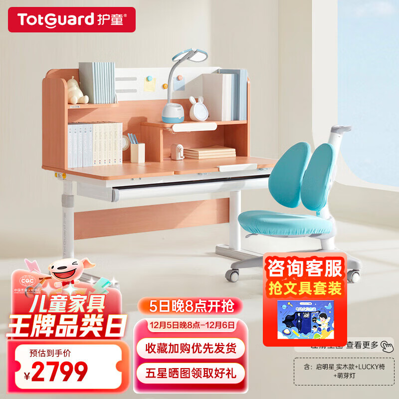 护童儿童学习桌小学生写字桌实木书桌带书架1.2m可调节升降课桌椅套装价格:3099.00元!
