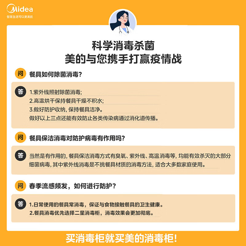 5、新家的电器几乎都是美的这个牌子的,珠三角的亲戚向我推荐买美的的消毒碗柜,果断入手,颜值超高,性价比超高,同事来家里也被种草了,非常满意。